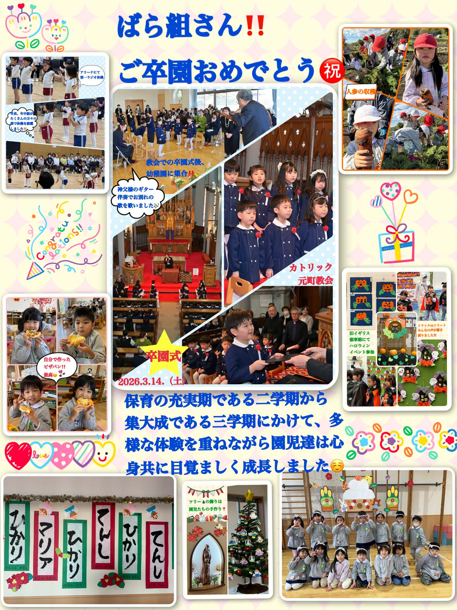 2026.3.14(土)、カトリック元町教会で卒園式を行いました。 ばら組さん!!ご卒園おめでとう!